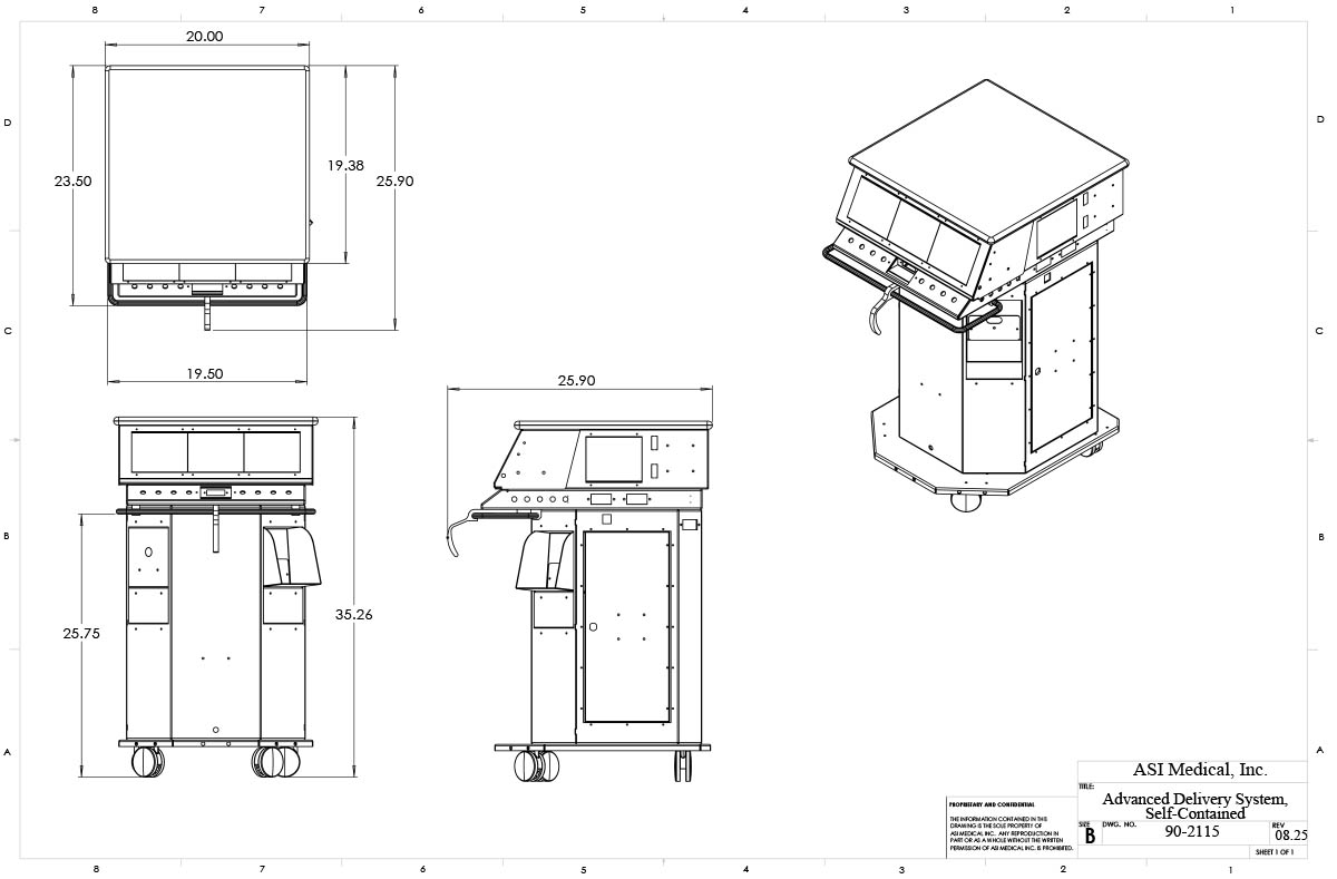 Mobile self-contained dental delivery allows freedom of positioning within the dental operatory and eliminates the need to connect to central utilities. Dental system equipped with ASI’s internal compressed air system to power handpieces and water system (see ASI Power Chassis for more details). Custom configure instruments with ASI Advanced modular panel design. If suction is also required, please see other dual function models.