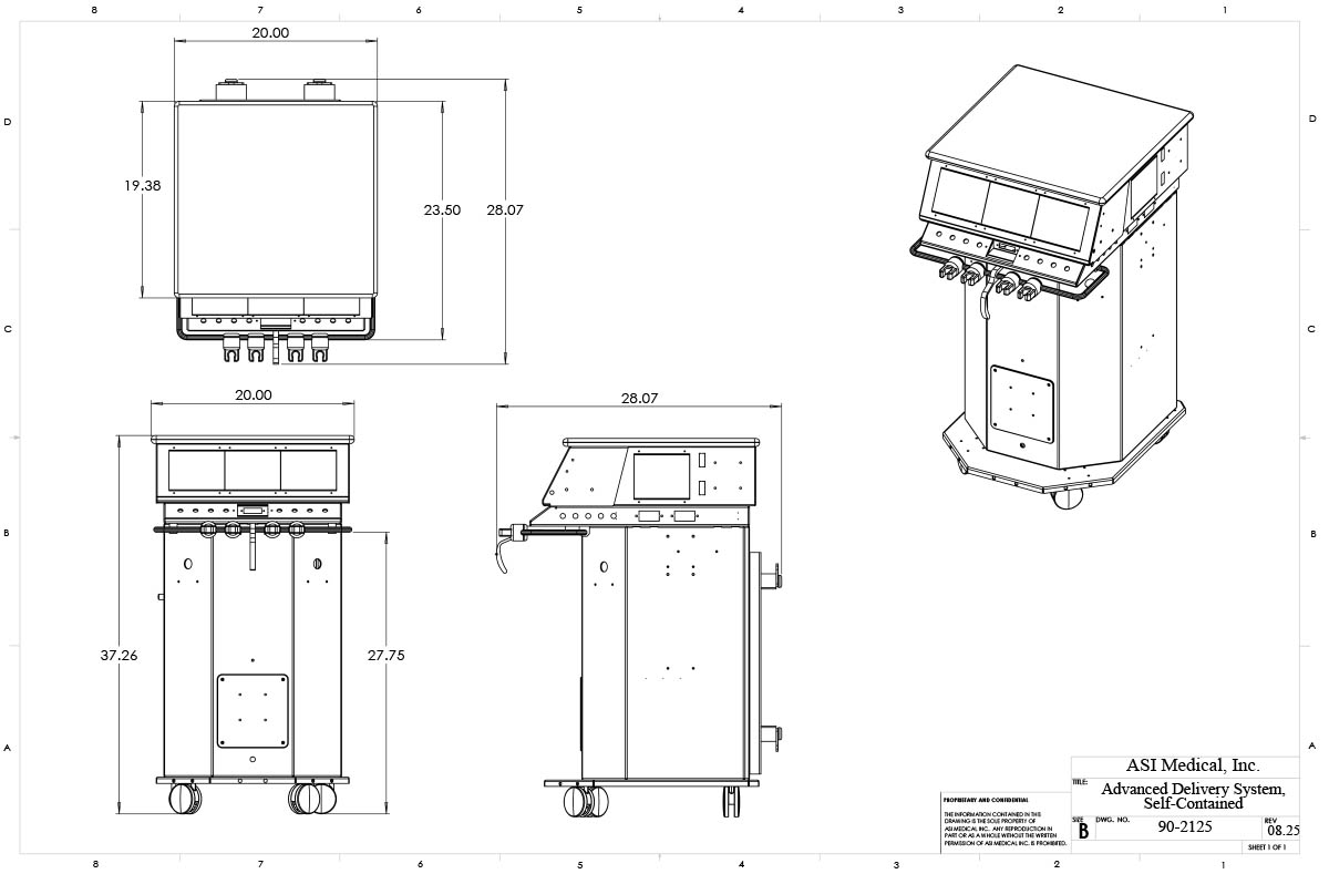 Fully self-contained dental delivery with air and suction for both doctor and assitant instruments in one cart and eliminates need to connect to central utilities. Dental system equipped with both an internal compressed air system to power handpieces, water system and an internal suction pump system to power the suction handpieces.